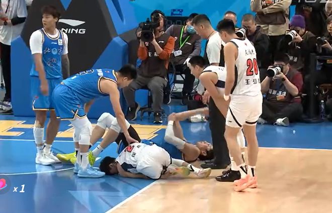 然而,廣東隊是禍不單行,在第二節比賽,還有4分多鍾的時候,北京隊球員跑動時,撞到了廣東隊球員薩姆納,然後就失去了平衡,直接摔倒。然而,周琦這一倒,卻直接撞到了徐傑的膝蓋!