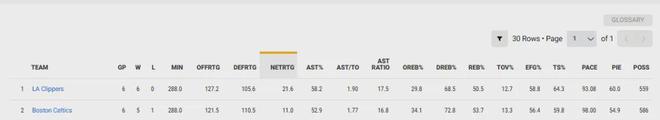 過去6場比賽,快船是聯盟斷檔領先的最佳球隊,最靠近他們的球隊是他們下一場的對手凱爾特人,兩隊百回合淨勝分差了10+。