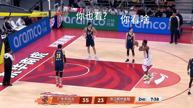 當時廣東隊領先12分,或許他們小視浙江隊,以為穩贏了,對搶籃板非常不專注,好像是隊內訓練那樣,非常不重視和專注。可悲的是,不但隊長胡明軒把眼睛望向另一端,而王少傑也望向另一端,兩人的眼光都沒有放在執行罰球的約瀚遜身上,後者罰未罰球他倆並不知道,球砸到籃框之後他們才反應過來,可是這時籃板被約瀚遜搶到了並進行大力扣籃。焦泊喬卻雙手插腰,也不專注,三人的反應都慢了一拍,而不是半拍。