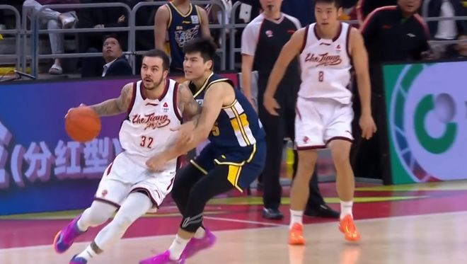 末節最後31秒,胡明軒還在一次亂戰中獲得了超級弧頂大空位的三分機會,但接下來他在無人看管的情況下,出手將球砸到了籃筐前沿,這一回合對廣東隊來說也是損失慘重,雖然後續奎因搶到了籃板被瓊斯推出界外,但被裁判張磊吹罰浙江球權。
