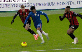 第10分鍾,埃斯特旺帶球突入禁區,被塞門約推倒在地,主裁沒有表示,隨後VAR介入,主裁到場邊觀看視頻回放,判給切爾西點球,帕爾默主罰命中,切爾西扳平。