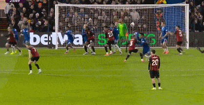 第7分鍾,伯恩茅斯界外球擲到禁區內,前點頭球後蹭,布魯克斯後點頭球攻門,球被桑切斯撲出,布魯克斯跟進門線捅射得手,VAR確認進球有效,伯恩茅斯1-0領先。