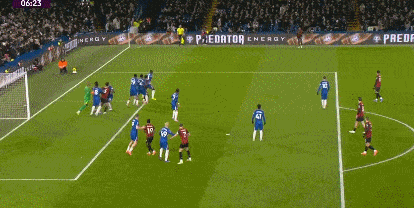 第42分鍾,布魯克斯右路下底傳中,切爾西禁區內風聲鶴唳將球解圍。