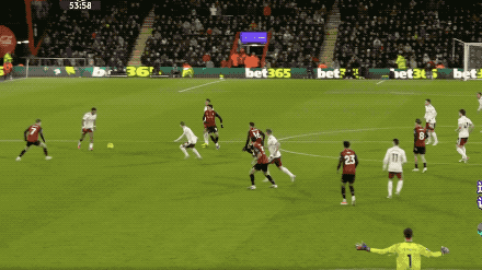 第10分鍾,加布裏埃爾大腦短路,直接把球傳給了埃瓦尼爾森,後者笑納大禮,將球打進,伯恩茅斯以這樣意外的方式取得領先。