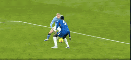 第58分鍾,哈蘭德本方半場啟動,一路帶球到了禁區,最後的射門被巴迪亞希勒封堵。