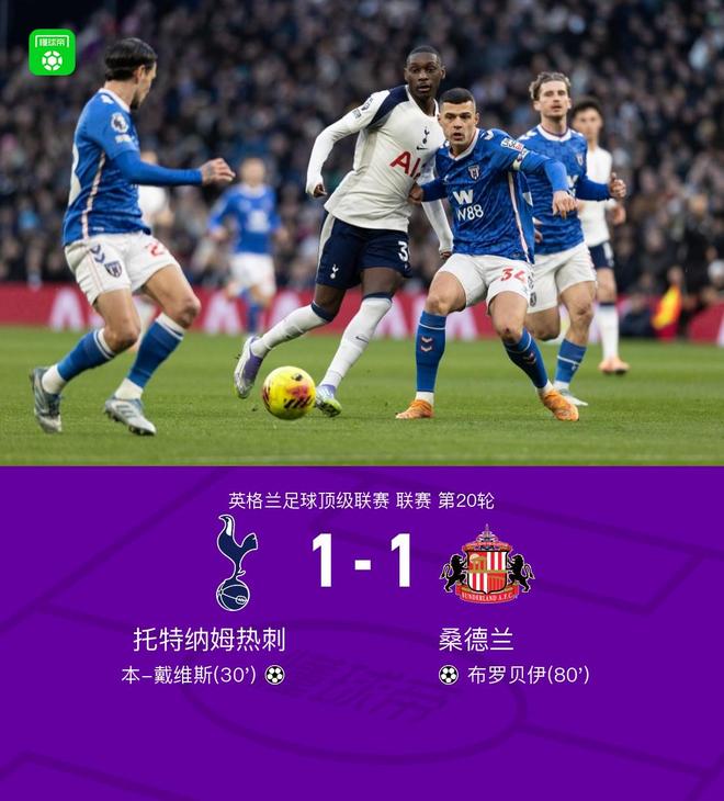 劍南春丨熱刺1-1桑德蘭,本-戴維斯建功,布羅貝伊扳平比分