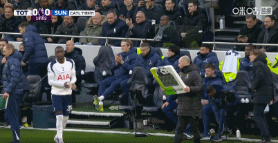 第19分鍾,熱刺被動調整,庫杜斯傷退,穆阿尼替補上場