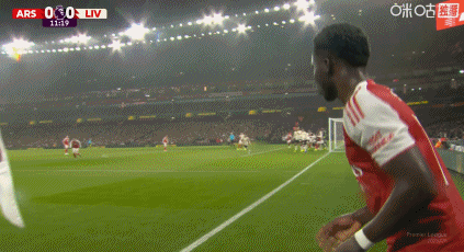 第44分鍾,阿森納前場圍攻,薩卡禁區內打門被擋